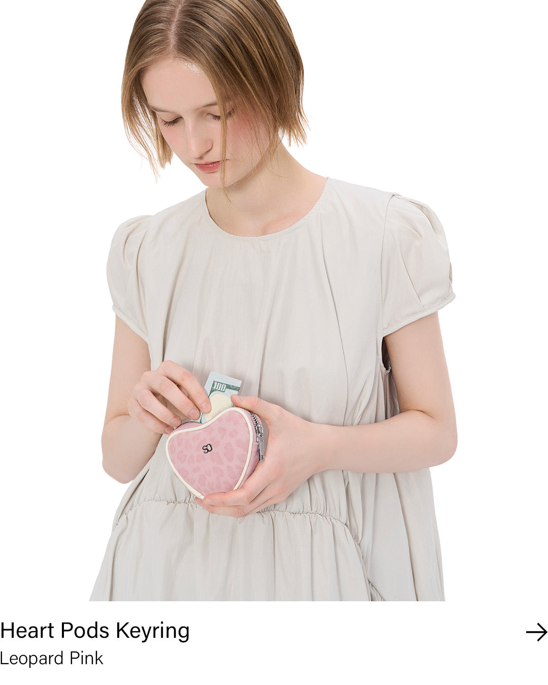 [Japan Exclusive] Heart Pods Keyring · ハートポッドキーリング (レオパードピンク)