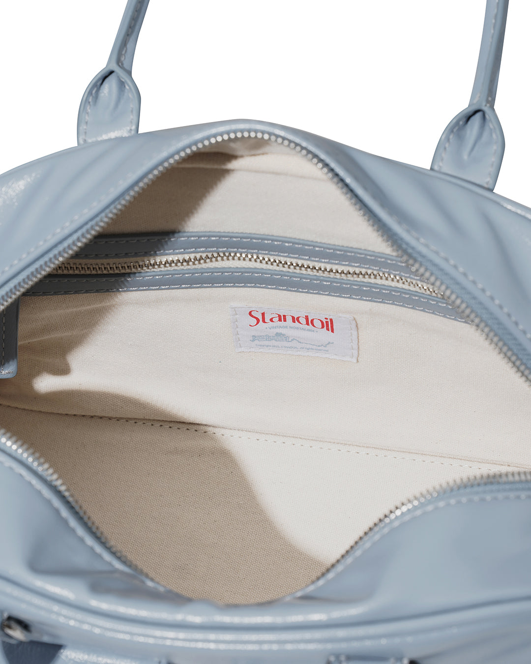 - ヴィンテージムードのハンドル装飾、柔らかいダブルファスナー